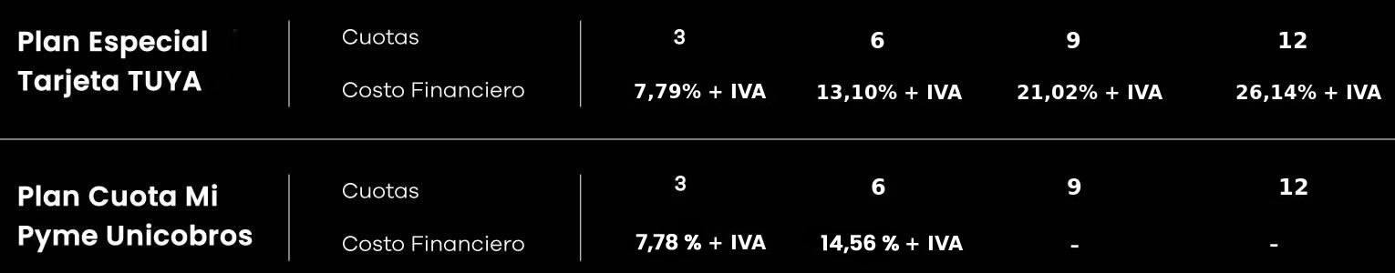 Los comercios podrán optar por las distintas alternativas que ofrecemos desde el 02/12 a través de una solicitud mediante correo electrónico enviada a ayuda@unicobros.com.ar indicando el CUIT de su comercio y el plazo seleccionado.